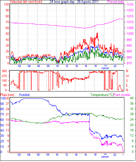 Ràfega màxima vent................. = 40.7 kmh de 338°(NNW) ..dia 26 ,hora 18:38