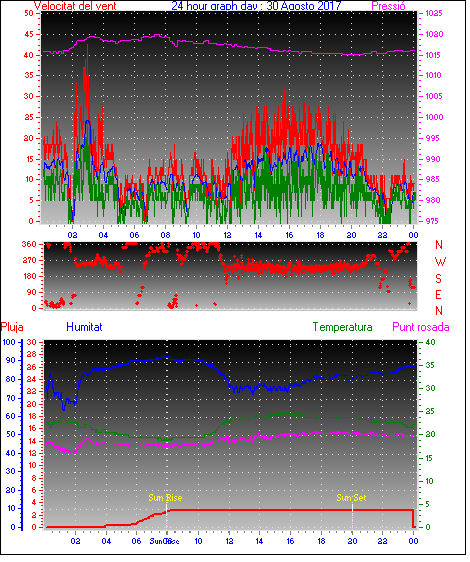 Veloc.màx ràfega................... = 42.6 km/h de 248°(WSW) ..dia 30 ,hora 02:56