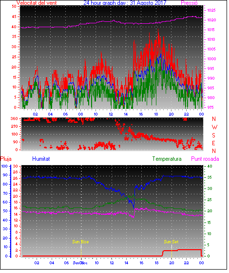 Ràfega màxima vent................. = 31.5 kmh de 225°( SW) ..dia 19 ,hora 15:26