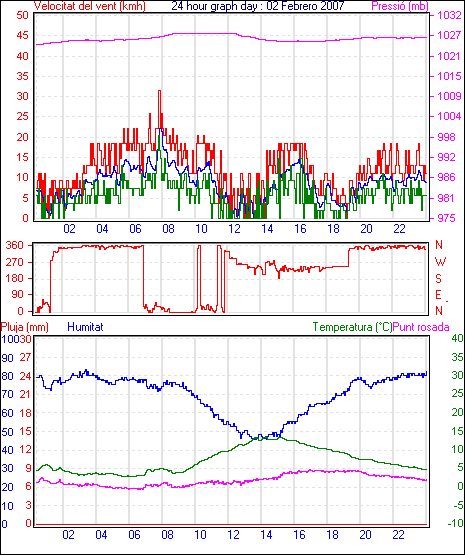 Veloc.màx ràfega................... 33.3 kmh de 032° ..dia 02,hora 07:53