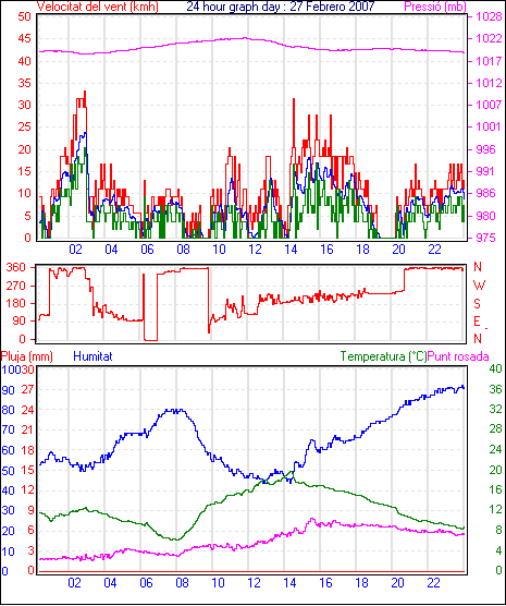 Veloc.màx ràfega................... 33.3 kmh de 02° ..dia 27,hora 02:57
