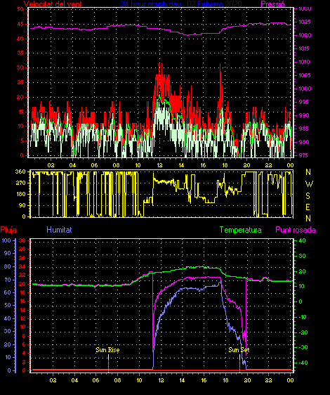 Veloc.màx ràfega................... = 27.8 km/h de 293°(WNW) ..dia 02 ,hora 11:04