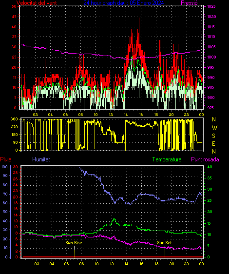 Ràfega màxima vent................. = 42.6 kmh de 315°( NW) ..dia 06 ,hora 08:02