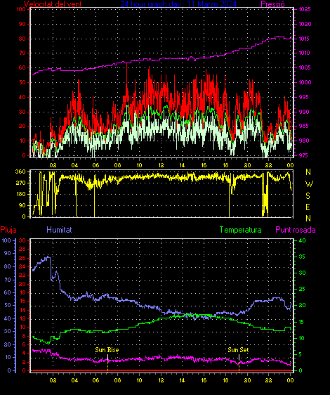 Ràfega màxima vent................. = 46.3 kmh de 338°(NNW) ..dia 11 ,hora 08:05
