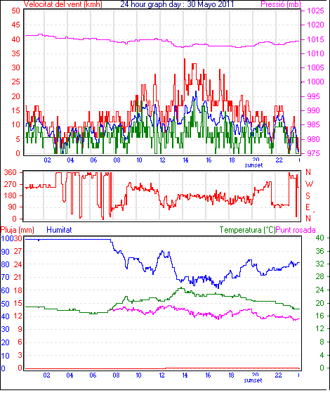 Veloc.màx ràfega................... = 33.3 km/h de 180°( S ) ..dia 30 ,hora 15:01