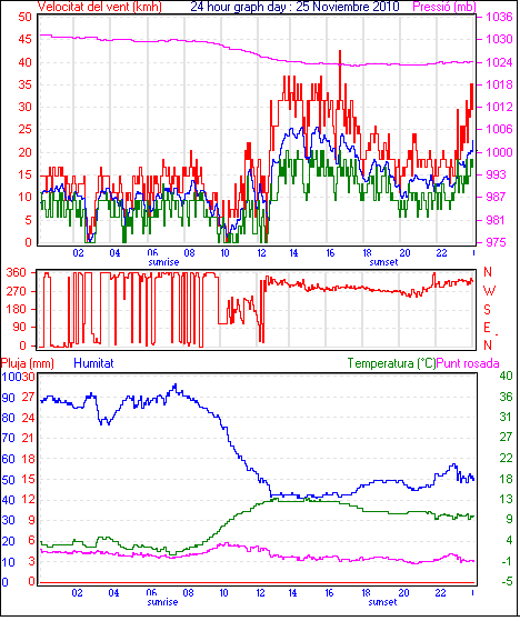 Veloc.màx ràfega.............. = 42.6 km/h de 293°(WNW) ..dia 25 ,hora 16:44