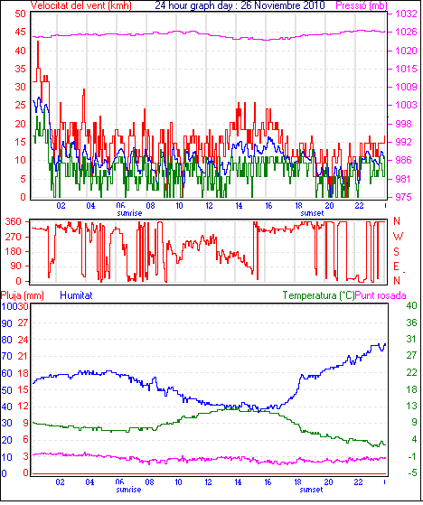 Veloc.màx ràfega.............. = 42.6 km/h de 315°( NW) ..dia 26 ,hora 00:46