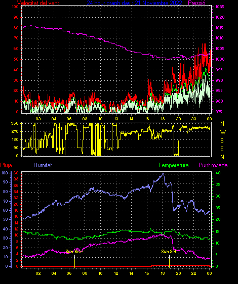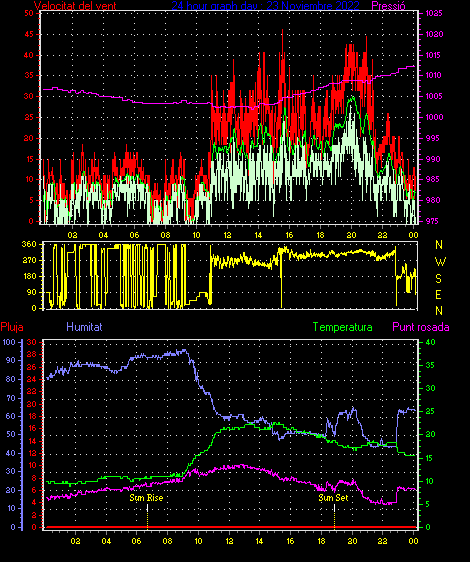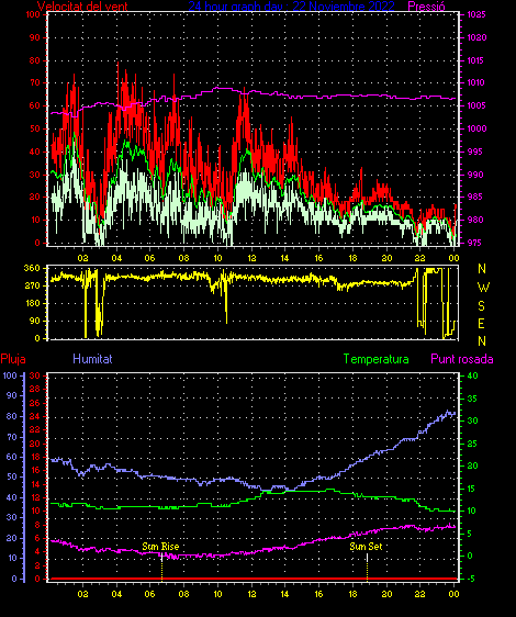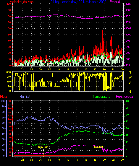 Ràfega màxima vent................. = 50.0 kmh de 315°( NW) ..dia 22 ,hora 04:02