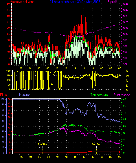 Veloc.màx ràfega................... = 42.6 km/h de 293°(WNW) ..dia 30 ,hora 16:03