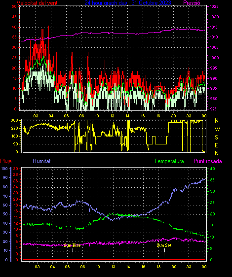 Veloc.màx ràfega................... = 40.7 km/h de 293°(WNW) ..dia 31 ,hora 03:04