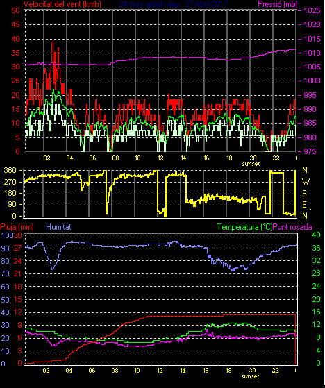 Veloc.màx ràfega.............. = 38.9 km/h de 315°( NW) ..dia 27 ,hora 02:50