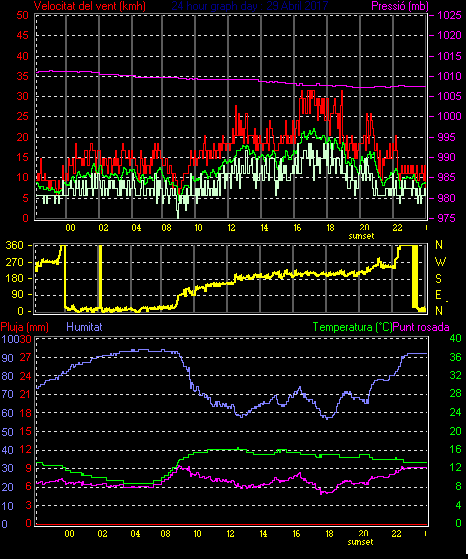 Veloc.màx ràfega.............. = 35.2 km/h de 225°( SW) ..dia 29 ,hora 17:04