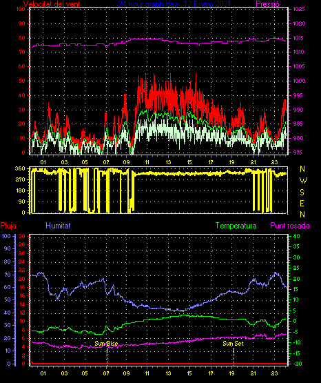 Veloc.màx ràfega.............. = 42.6 km/h de 315°( NW) ..dia 11 ,hora 06:24