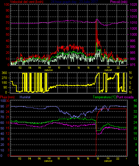 Veloc.màx ràfega.............. = 74.0 km/h de 293°(WNW) ..dia 23 ,hora 17:49