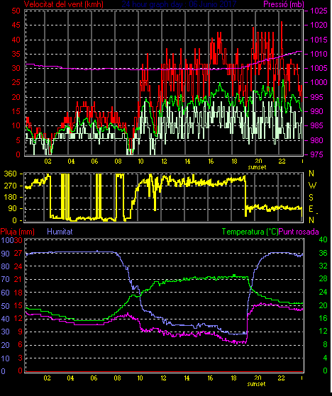 Veloc.màx ràfega.............. = 46.3 km/h de 113°(ESE) ..dia 06 ,hora 22:13