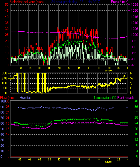 Veloc.màx ràfega.............. = 31.5 km/h de 135°( SE) ..dia 27 ,hora 15:38