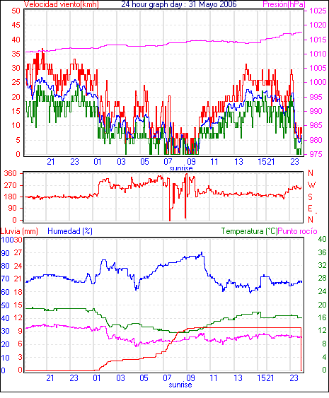 Veloc.màx ràfega.............. 31.5 kmh de 241° ..dia 31,hora 23:11