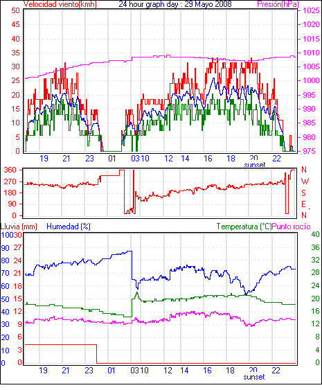 Ràfega màxima vent............ 29.6 kmh de 249° ..dia 29,hora 19:44