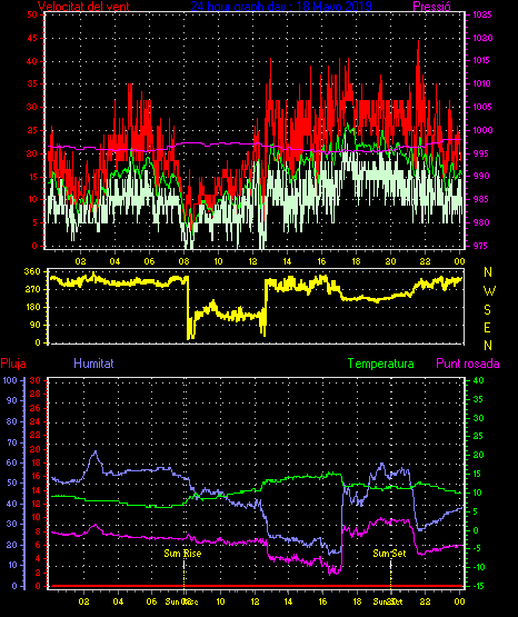 Veloc.màx ràfega.............. = 44.4 km/h de 293°(WNW) ..dia 18 ,hora 21:35