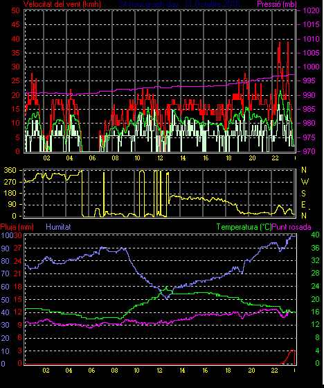 Veloc.màx ràfega.............. = 38.9 km/h de 045°( NE) ..dia 11 ,hora 23:22