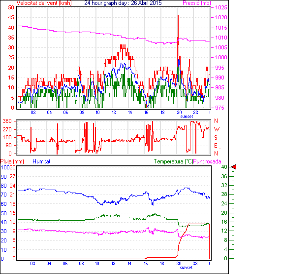 Veloc.màx ràfega................... = 46.3 km/h de 293°(WNW) ..dia 26 ,hora 20:07