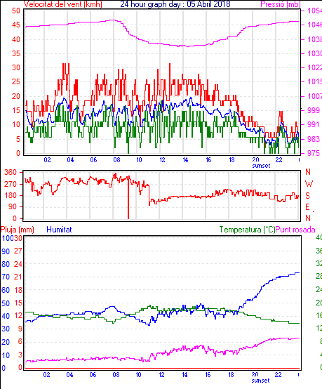 Veloc.màx ràfega................... = 31.5 km/h de 315°( NW) ..dia 05 ,hora 00:01