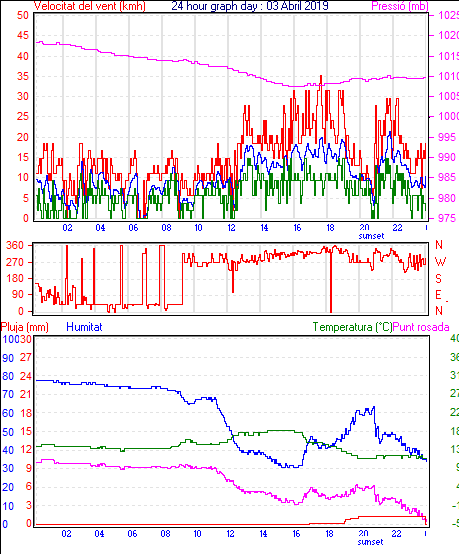Veloc.màx ràfega................... = 31.5 km/h de 293°(WNW) ..dia 03 ,hora 21:04
