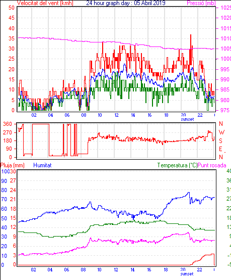 Veloc.màx ràfega................... = 37.0 km/h de 135°( SE) ..dia 28 ,hora 15:02