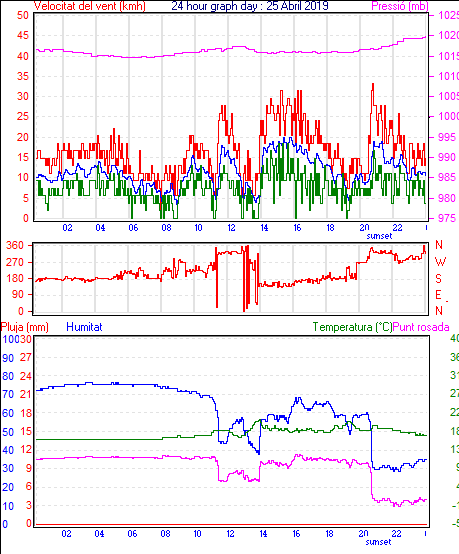 Veloc.màx ràfega................... = 27.8 km/h de 315°( NW) ..dia 25 ,hora 21:01