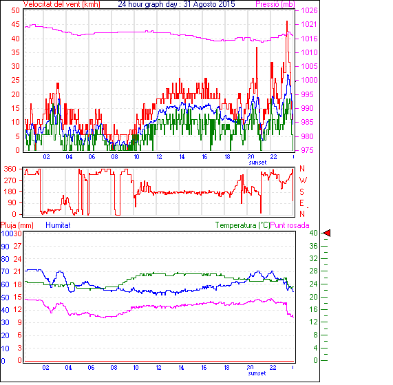 Veloc.màx ràfega................... = 46.3 km/h de 270°( W ) ..dia 31 ,hora 23:27