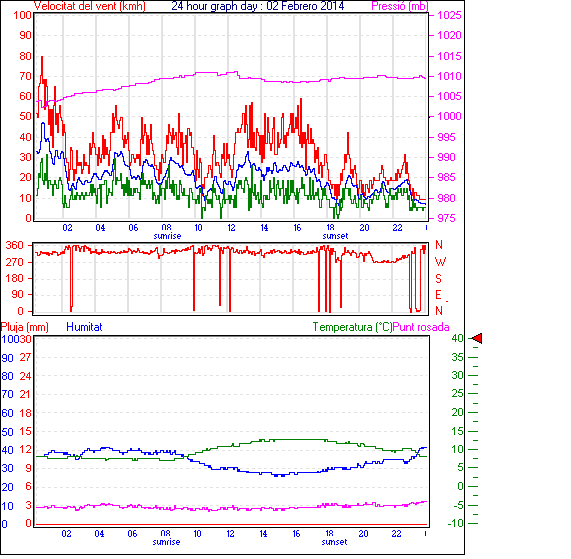 Ràfega màxima vent................. = 59.2 kmh de 315°( NW) ..dia 02 ,hora 00:46