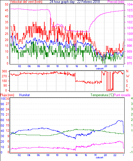 Veloc.màx ràfega................... = 33.3 km/h de 315°( NW) ..dia 22 ,hora 05:01