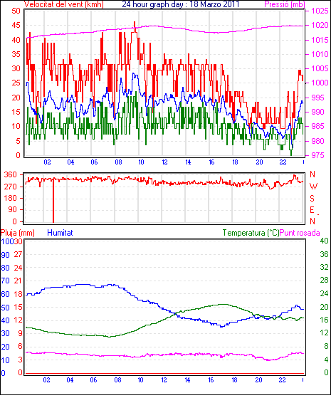 Ràfega màxima vent................. = 35.2 kmh de 315°( NW) ..dia 18 ,hora 00:31
