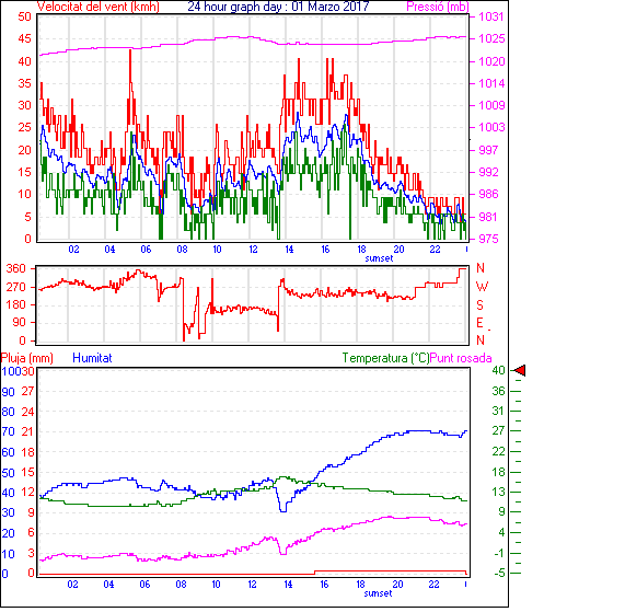 Veloc.màx ràfega................... = 42.6 km/h de 315°( NW) ..dia 01 ,hora 05:25