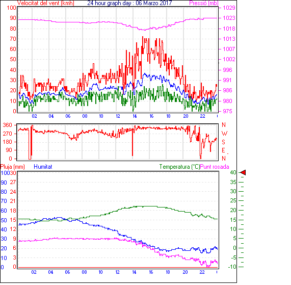 Ràfega màxima vent................. = 48.1 kmh de 315°( NW) ..dia 06 ,hora 17:11