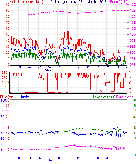 Veloc.màx ràfega................... = 53.7 km/h de 270°( W ) ..dia 27 ,hora 00:00
