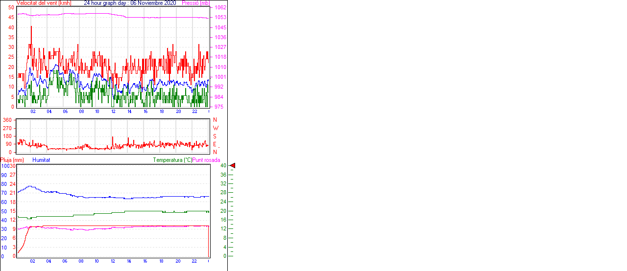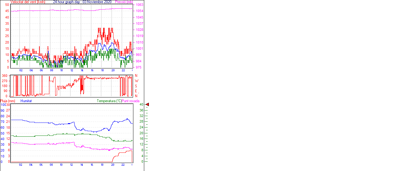 Ràfega màxima vent................. = 29.6 kmh de 315°( NW) ..dia 20 ,hora 01:05